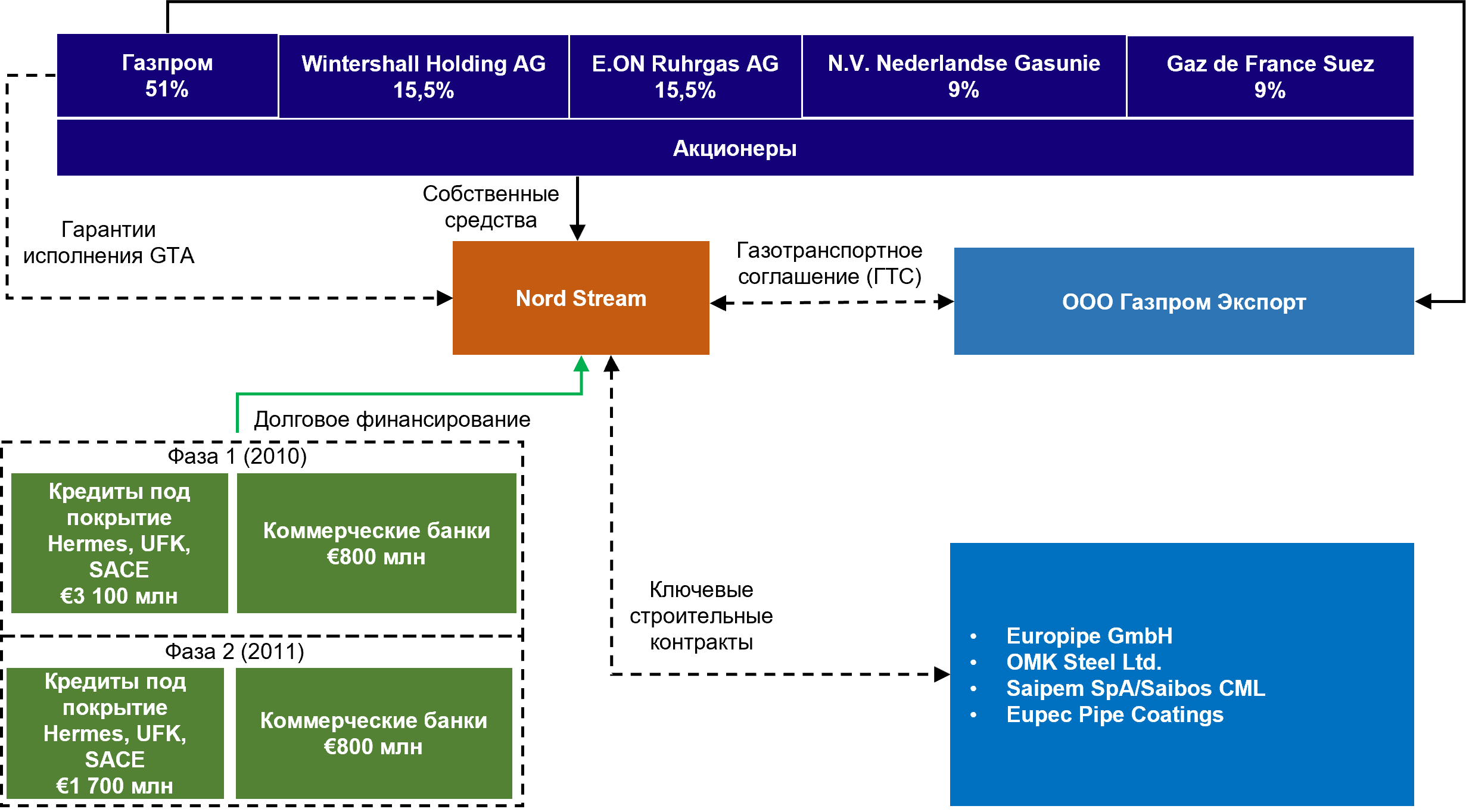 • Кредиторы: АЭК (Hermes, SACE), UFK, международные коммерческие банки